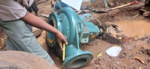 وصلت لمحطة تنقية مياه مدني النيلية صباح اليوم طلمبة لضخ المياه بسعة 300 متر مكعب في