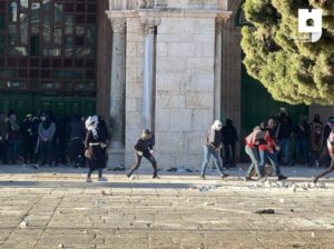وتصدى المصلون لقوات الاحتلال وحاولوا منعها من اقتحام باحات الأقصى، من خلال رشقها بالحجارة، وهتفوا “بالروح بالدم نفديك يا أقصى”.