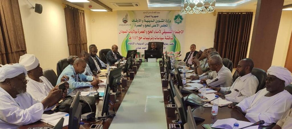 وفي نفس المنحي انعقد اليوم بمقر المجلس الأعلى للحج والعمرة الاجتماع الموسع مع أمناء الحج والعمرة بالولايات حيث بحث الإجتماع سياسات وترتيبات وموازنة حج 1443هـ حيث أشاد الاجتماع بالجهود الكبيرة التي بذلتها اللجنة الفنية لإنجاز حزم الخدمات بالمملكة العربية السعودية وأبان السيد الوزير أن كافة الترتيبات قد اكتملت بالمملكة العربية السعودية مع المؤسسات الأهلية والرسمية وتم ابرام العقود المطلوبة مع مزودي الخدمات .