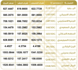 سعر العملات أمام الجنيه السوداني من بنك الخرطوم اليوم الاحد..