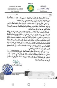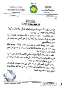 اعلنت جامعة الفاشر بولاية شمال دارفور تأجيل الامتحانات إلى مابعد عيد الفطر نتيجة للاحتجاجات الطلابية.