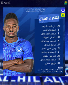 من المتوقع ان يدفع مدرب الهلال السوداني في مباراة المصيرية اليوم امام صن داونز بتشكيلة يتقدمها ابو عشرين ومحمد عبدالرحمن