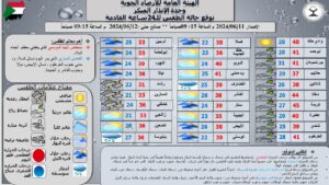 وأبانت ان الفاصل المداري يمر اليوم شمال كسلا، ودمدني، جنوب الخرطوم، شمال الأبيض، نيالا، جنوب الفاشر، الجنينة.