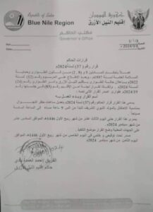 قرر حاكم إقليم النيل الأزرق الفريق أحمد العمدة بادي  تمديد ساعات حظر التجوال من التاسعة مساء وحتي السادسة صباحا ، واصدر قرار .يحمل  الرقم  37 لسنة 2024  نورده إليكم فيما يلي..