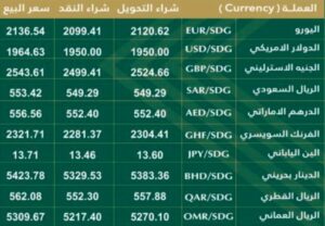 سعر العملات أمام الجنيه السوداني من بنك الخرطوم