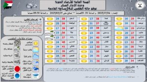 وبحسب تقرير للوحدة أصدرته قبل قليل تحصل عليه المندرة نيوز ان معظم انحاء البلاد، وإشارت إلى أن الطقس سيكون معتدلًا نهارًا وباردًا ليلًا في شمال وشمال غرب وغرب البلاد، وحار ومعتدل ليلًا في شرق السودان.