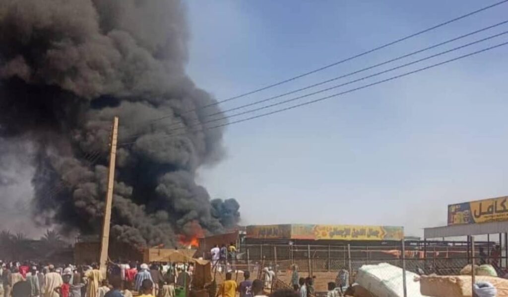 شب حريق ضخم بسوق البصل في المحلات التجارية بسوق محلية الدبة لم تحصر خسائره حتى الآن ولم يتضح مصدره بعد .