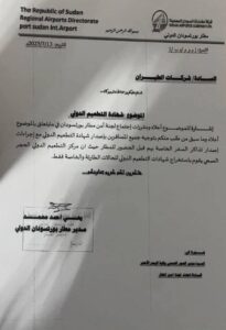 الخرطوم=^المندرة نيوز^ أصدرت سلطات مطار بورتسودان الدولي توجيها عاجلا للمسافرين بضرورة إصدار شهادة التطعيم الدولي قبل حضور المطار.