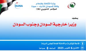 يستضيف المؤتمر التنويري رقم (36) لوزارة الثقافة والإعلام والسياحة، الذي تنظمه وكالة السودان للأنباء، وزيرا خارجية السودان وجنوب السودان السفير محيي الدين سالم والسيد ماندي سيمايا