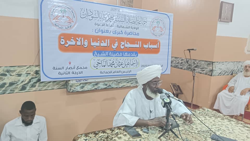 هذا وكان د. اسماعيل عثمان الماحي الأمين العام لجماعة أنصار السنة المحمدية بالسودان قد قدم خلال اللقاء محاضرة بعنوان اسباب النجاح في الدنيا والآخرة تناول فيها العديد من المحاور التي من شأنها الفوز بالدنيا والآخرة مؤكدا نجاح الشعب السوداني وقواته المسلحة والقوات المساندة لها في حرب الكرامة مما يعكس واقعا جديدا بالبلاد داعيا لضرورة اهتمام الدولة بالمنتجين وتحفيزهم للعمل والإنتاج. كما دعا لضرورة الإخلاص في العمل وان يكون خالصا لوجه الله تعالى وان يكون هدفه المصلحة العامة للبلاد.