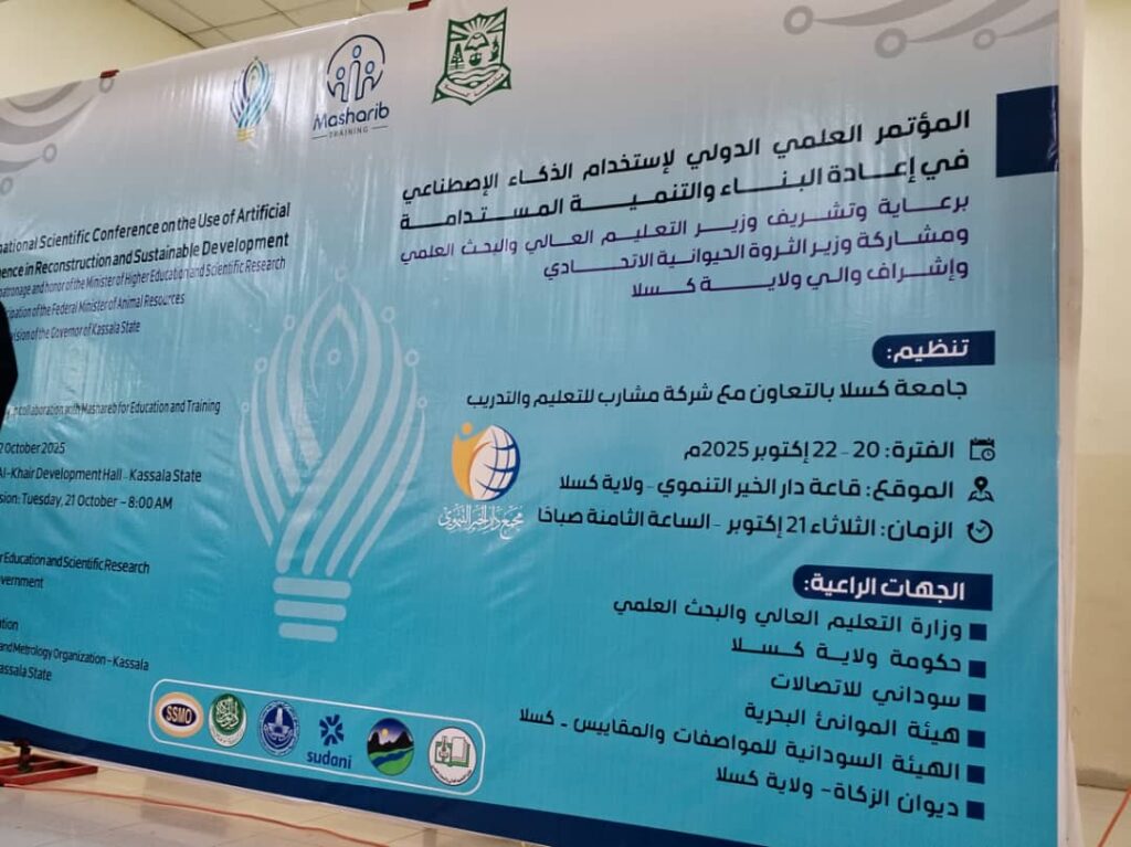 بدأت اليوم فعاليلت المؤتمر العلمي الدولي لاستخدام الذكاء الاصطناعي في اعادة البناء والتنمية المستدامة الذي تنظمه جامعة كسلا بالتعاون مع شركة مشارب للتعليم والتدريب (ماليزيا )في الفترة من ٢١ الي ٢٢ من الشهر الجاري تحت شعار( من الدمار الي الاعمار بقاعة الرواد بمجمع دار الخير التنموي بولاية كسلا ،