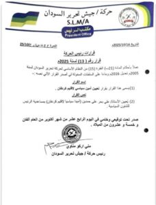 الخرطوم=^المندرة نيوز^ أصدر رئيس حركة جيش تحرير السودان مني أركو مناوي قرار بتعيين الأستاذ علي بحر حمدين أمينا سياسيا للحركة باقليم كردفان .