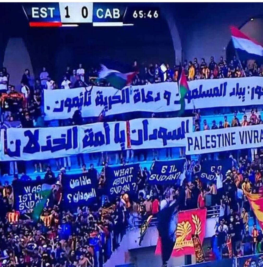 في مشهدٍ مؤثرٍ ومحمّلٍ بالرمزية، رفعت جماهير نادي الترجي الرياضي التونسي لافتة ضخمة حملت عبارة “السودان يا أمة الخذلان” خلال مباراة فريقها أمام النادي البنزرتي في الدوري التونسي الممتاز،