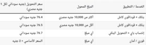 الخرطوم=^المندرة نيوز^ شهدت حركة تحويلات الجنيه السوداني مقابل الجنيه المصري اليوم الأحد 23 نوفمبر 2025م تغيرات ملحوظة في تعاملات التطبيقات المصرفية .
