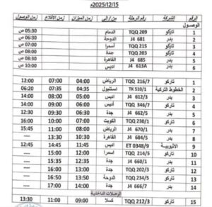 الخرطوم=^المندرة نيوز^ المندرة نيوز تنشر جدول الرحلات الجوية لهذا اليوم ذهابا وإيابا بمطار بورتسودان الدولي