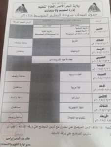 المندرة نيوز تنشر جدول إمتحانات الشهادة المتوسطة بولاية البحر الأحمر