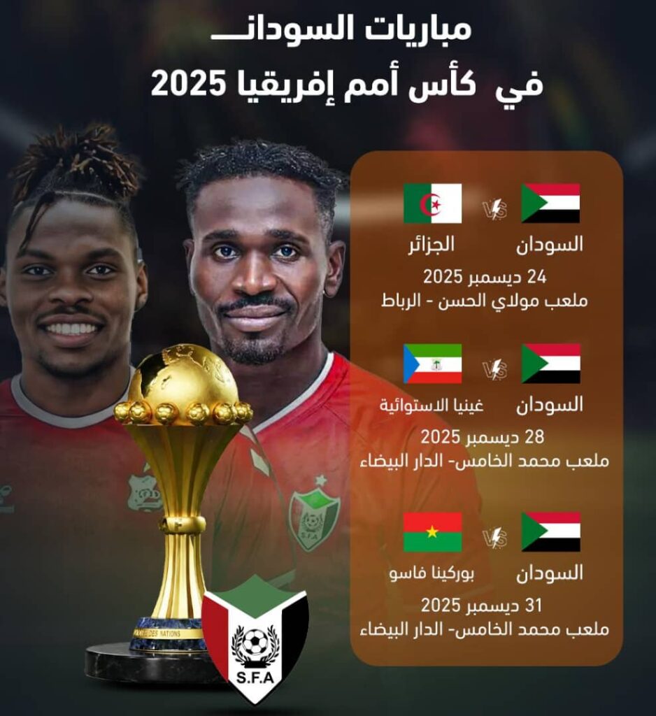 المندرة نيوز تنشر موعد مباريات السودان في كأس أمم إفريقيا 2025م.