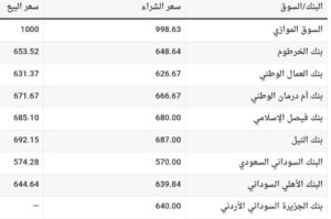 وبحسب بيانات التعاملات، أظهرت البنوك التجارية تفاوتاً في أسعار الشراء والبيع، فيما ظل السوق الموازي أكثر نشاطاً، وسجلت الاسعار القيم التالية :