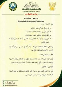 قرار لوالي وسط دارفور بشأن الاستنفار والمقاومة الشعبية
