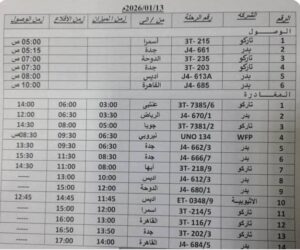 المندرة نيوز تنشر جدول الرحلات الجوية من وإلى مطار بورتسودان الدولي اليوم الثلاثاء 13 يناير 2026م.