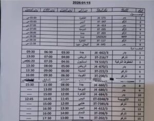 المندرة نيوز تنشر جدول الرحلات الجوية من وإلى مطار بورتسودان الدولي اليوم الخميس 15 يناير 2026م