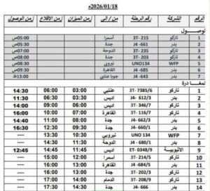 الخرطوم=^المندرة نيو^ المندرة نيوز تنشر جدول الرحلات الجوية من وإلى مطار بورتسودان الدولي ليوم الاحد 18يناير 2026م.