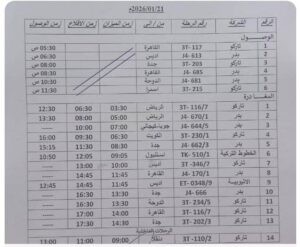 فيما يلي إليكم جدول الرحلات الجوية ى
