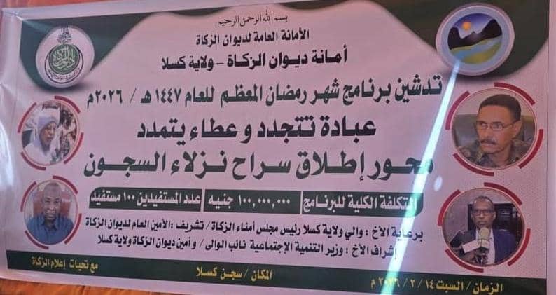 وثمن التعاون القائم بين الزكاة وادارة السجون والجهاز القضائي مشيرا الي ان موازنه العام 2026 تضاعفت الي 36 مليار جنيه منوها الي ان الديوان حريص خلال العام على تنفيذ عدد من الانشطة تجاه المجتمع بالولاية.
