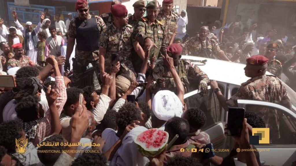 وفاجأ البرهان الأهالي بجولة ميدانية على متن عربة نصف نقل مكشوفة، حيث التقى المواطنين بشكل مباشر واستمع إلى آرائهم ومطالبهم، في مشهد يعكس طابعاً شعبياً للزيارة ويعزز التواصل المباشر بين القيادة والمجتمع المحلي.