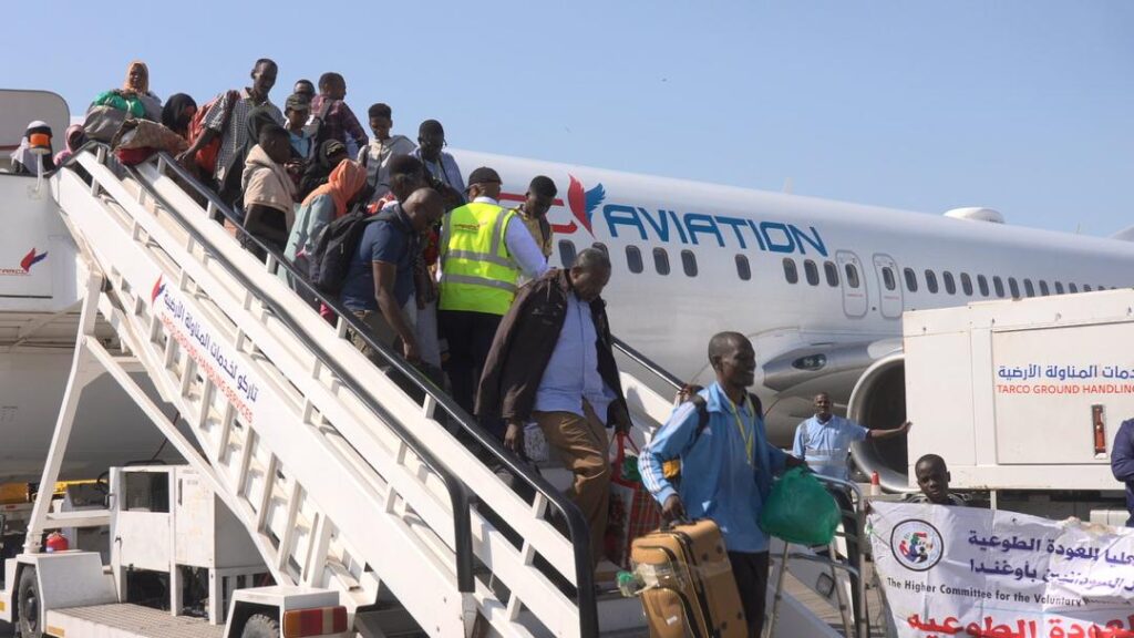 وصل مطار بورتسودان صباح اليوم 80 مواطنا في الفوج الثاني من اللاجئين .السودانيين من دولة يوغندا