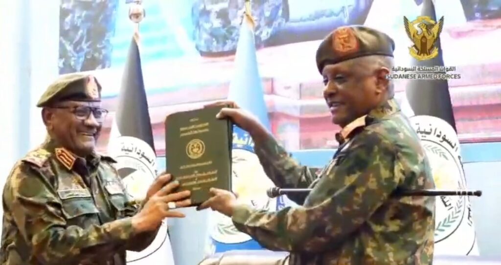 ​شرّف السيد رئيس مجلس السيادة القائد العام للقوات المسلحة الفريق أول ركن عبد الفتاح البرهان ، مراسم وإجراءات التسليم والتسلم لرئاسة هيئة الأركان بين الفريق أول ركن محمد عثمان الحسين والفريق أول ركن ياسر العطا..
