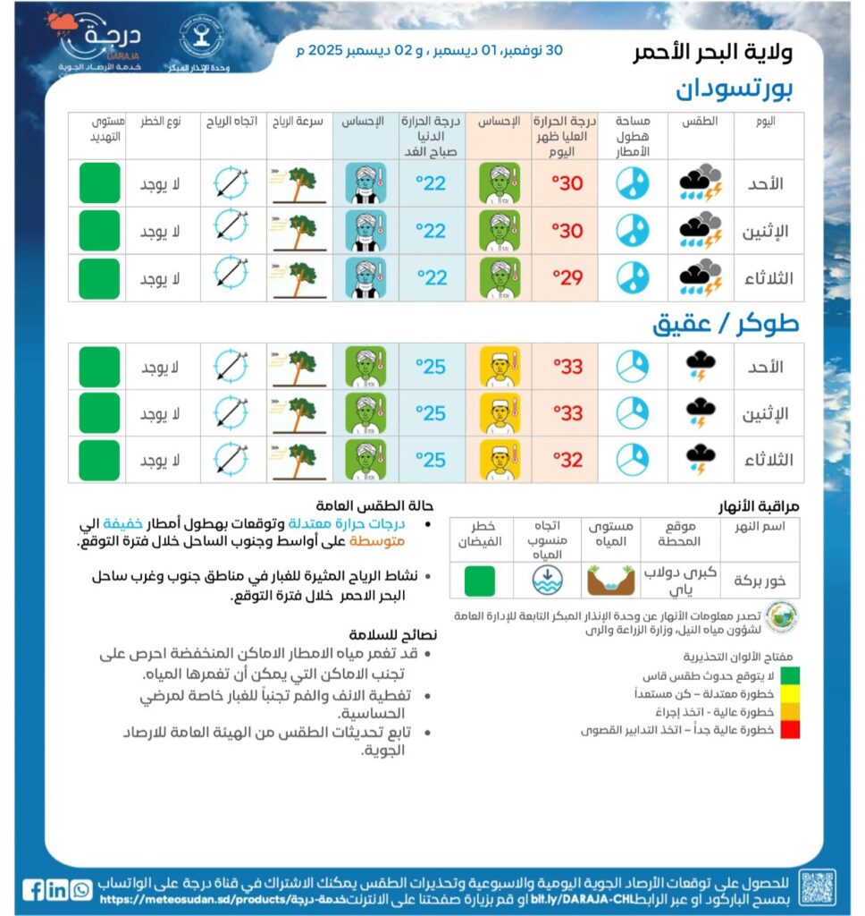 المندرة نيوز تنشر توقعات الطقس اليومية التي