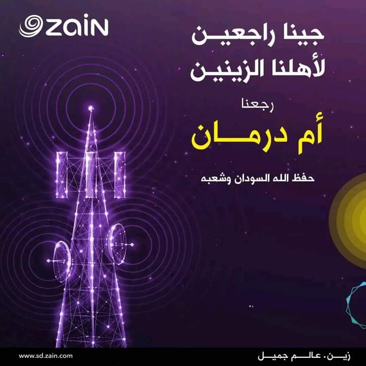 اعلنت الشركة السودانية للهاتف السيار ( زين ) عن عودة خدماتها تدريجياً لمدينة #امدرمان بولاية الخرطوم، وذلك بعد عمل فني كبير ومجهودات مقدرة للفرق الفنية،