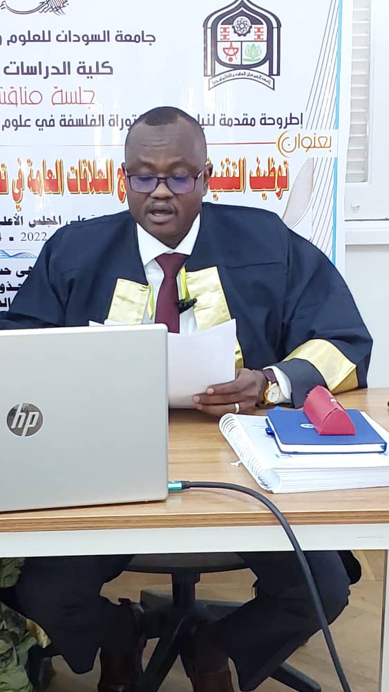 اجازت جامعة السودان للعلوم والتكنلوجيا درجة الدكتوراة المقدمة من الطالب عبدالعزيز الصادق درجة الدكتوراة للطالب/ عبدالعزيز الصادق محمد يوسف عن اطروحة بعنوان: (توظيف التقنية الرقمية لبرامج العلاقات