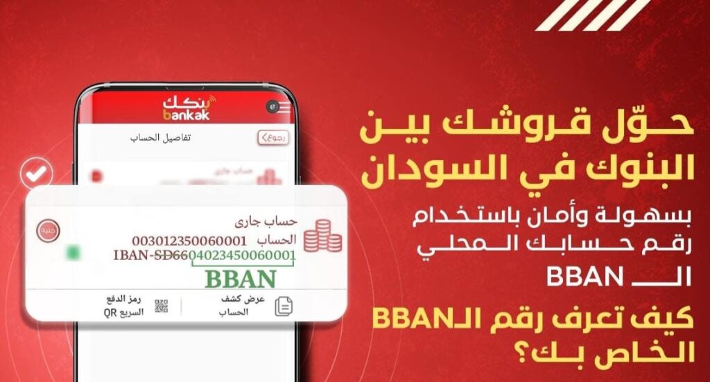 عميلنا الكريم، أصبح التحويل المصرفي بين البنوك داخل السودان سهلا مع تطبيق بنكك باستخدام رقم حسابك المحلي “البيبان”.