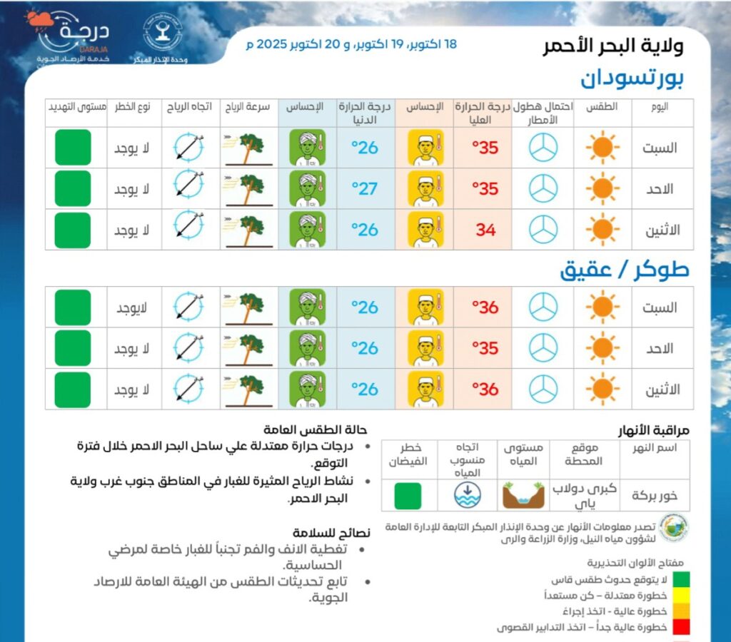 اعلنت الهيئة العامة للأرصاد الجوية توقعات الطقس اليومية للأيام