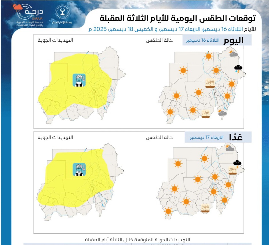 أصدرت الهيئة العامة للأرصاد الجوية السودانية اليوم