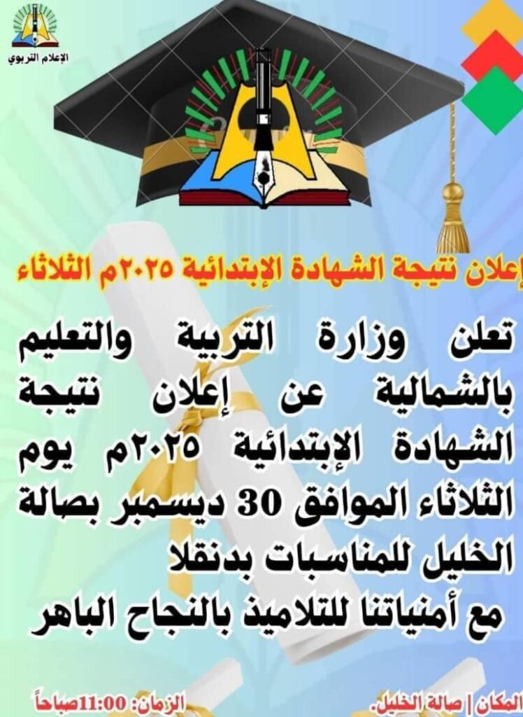 إعلان نتيجة الشهادة الإبتدائية بالولاية الشمالية