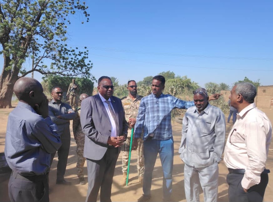 وقف المهندس إبراهيم مصطفى على محافظ مشروع الجزيرة يرافقه
