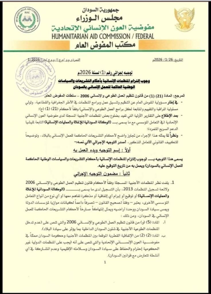 الحكومة السودانية تحذر وكالات الإغاثة والمنظمات الأجنبية