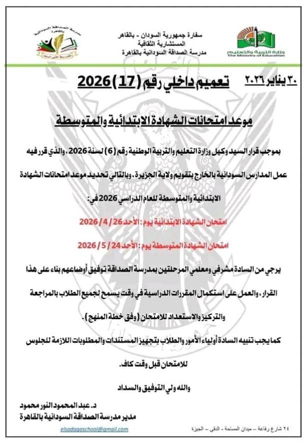 التربية السودانية تعتمد تقويم الجزيرة كأساس لإقامة امتحانات الشهادتين في المراكز الخارجية